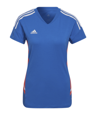 Hier kommt das adidas Condivo Damen-Sportshirt in Blau, das dir die Möglichkeit gibt, alles aus dir herauszuholen. Die super bequeme, schweißableitende, atmungsaktive und leichte Funktionsweise lässt es überzeugen. Dieses Sporttop wurde geschaffen, um deine Leistung um ein Level zu erhöhen. Das Sportshirt ist kurzärmelig und hat einen angenehm zu tragenden V-Ausschnitt. Produkt
