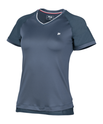 Das Damen-Oberteil von Fila in Blau ist die optimale Ausstattung mit dem Potenzial für Bestleistungen. Es ist atmungsaktiv, super bequem und kühlend. Das Oberteil ist kurzärmelig und hat einen zeitlosen V-Ausschnitt. So seid ihr noch leistungsfähiger und könnt im Training alles geben.