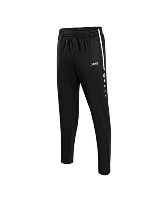 Die schwarze JAKO Active Trainingshose Kids mit weißen Details ist eine lange Fußballhose für Kinder. Sie ist fürs Fußballtraining konzipiert mit ihrem Karottenschnitt, funktioniert aber auch exzellent für jede andere Sportart. Durch ihre speziellen Features bietet die Junior Training Pant hohen Tragekomfort und Funktionalität. Als Teil des Teamsportsortiments von JAKO ist sie ideal für Kinder-Mannschaften und Vereine. Aber auch eine spannende Option für Dich persönlich, an qualitativ hochwertige Trainingsbekleidung in Kindergrößen zu besonders attraktiven Preisen zu kommen.   Was bekomme ich? KEEP DRY Technologie: Feuchtigkeitsregulierend und schnell trocknend. Stretchiger Strick: Flexibel für optimale Bewegungsfreiheit. Fußballtypischer