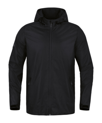 Die Jacke von JAKO in Schwarz stattet euch optimal aus und lässt euch jederzeit – sogar bei Regenwetter – zeigen, was in euch steckt. Schlechtes Wetter ist mit der Kapuze mit Kordelzug ab jetzt kein Problem mehr. Wir empfehlen dieses atmungsaktive und bequeme Modell mit dem angenehmen Tragegefühl. Obendrein bietet sie euch eine hohe Strapazierfähigkeit und einen Wasserschutz. Beim Training und beim Aufwärmen seid ihr so super vorbereitet. Ein optisch schicker Stehkragen bietet dieser langärmligen Jacke optische Unterstützung. Verschließt diese Jacke ganz bequem und schnell mit dem Reißverschluss. Die vorderen Zip-Taschen bieten Platz und Stauraum für alle kleinen Notwendigkeiten. Mit dieser Jacke seid ihr sowohl im Training als auch in der Freizeit bestens ausgerüstet.