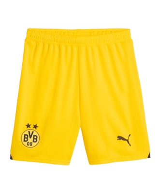 Hier kommt die PUMA Hose in Gelb, die dir hilft, deinen Lieblingsverein in jeder Lage zu supporten und zu zeigen, wofür dein Herz schlägt. In keiner Fan-Sammlung darf diese Borussia Dortmund-Hose fehlen. Sie ist atmungsaktiv, bequem und schweißableitend. Eine hohe Strapazierfähigkeit wird dir geboten. Optisch besticht sie mit einem Vereinswappen auf der Hose. Ändere die Passform der Short ganz individuell durch einen Kordel- und einen Gummizug.