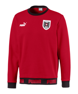 PUMA bringt mit dem Sweatshirt in Rot ein Produkt heraus, mit dem du dein Team in guten wie in schlechten Zeiten mit Herzblut und Hingabe unterstützen kannst. Als echter Ã-sterreich-Fan brauchst du dieses Sweatshirt. Das atmungsaktive, leichte, wärmende und super bequeme Modell überzeugt auf ganzer Linie. Die tolle Optik dieses Shirts wird unterstützt durch ein Verbandslogo auf der Brust. Produkt