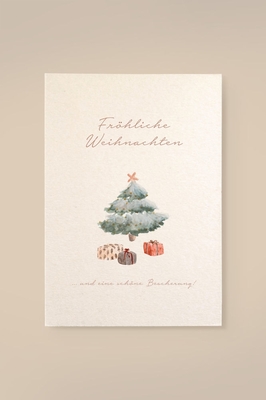Die Karte mit dem illustriertem Weihnachtsbaum aus hochwertiger, stabiler Holzschliffpappe mit wunderschön strukturierter und leicht cremefarbener Optik ist die perfekte Karte zu Weihnachten. • Einfach zu beschriften • Stabile Holzschliffpappe • Mit handillustrierten Motiven • Made in Germany