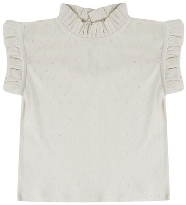 Leevje Pointelle Top Mit Rüschenstehkragen 74/80 Beige