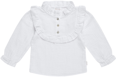Diese zuckersüße superweiche Musselinbluse erweitert leevjes Modekollektion. Die weiche Bluse mit detailverliebter Rüschenkanten an den Ärmeln, am Hals und den zarten Strickereien auf der Brust interpretieren die klassische Baumwollbluse neu. • Knöpfe in edler Perlmuttoptik • Ausgefallene Bluse, besonders für die schickeren Anlässe ein Highlight • Made in Portugal Produktinformationen • 100% Bio-Baumwolle • Waschbar bei 30 Grad mit gleichen Farben