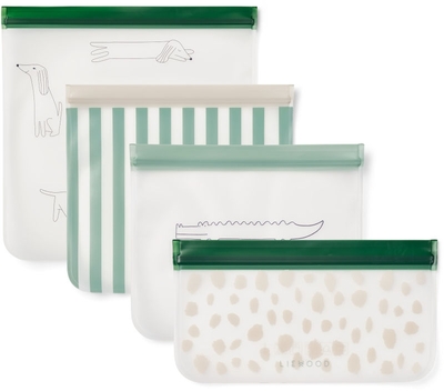 WIEDERVERWENDBARE REISEAUFBEWAHRUNGSTASCHEN 4ER-PACK Die wiederverwendbaren Clive Aufbewahrungstaschen sind praktische Behälter für Snacks, Toilettenartikel und vieles mehr, und ersetzen die Einwegbeutel. Dieses Set aus 4 Beuteln in verschiedenen Größen ist gefrier- und auslaufsicher und kann für alles verwendet werden: ob zu Hause oder unterwegs. Produktdetails • Wiederverwendbare Lebensmittelbeutel • Aus lebensmittelechtem PEVA-Material • Wiederverwendbare Alternative zu Plastiktüten • Vielseitig einsetzbar, perfekt für Snacks, Babynahrung, Schreibwaren, Reisen und mehr. • Transparentes Design ermöglicht einen schnellen Blick auf den Inhalt • Leicht zu reinigen • Haltbar • 4er-Pack Maße • Small: Höhe (cm) 12; Länge (cm) 22 • Medium: Höhe (cm) 18, 5; Länge (cm) 22 • Large: Höhe (cm) 25; Länge (cm) 23 • X-Large: Höhe (cm) 28; Länge (cm) 28