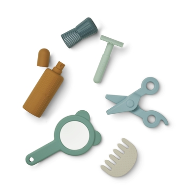 Dieses Spielzeug fördert Rollenspiele und hilft Kindern, soziale Fähigkeiten zu entwickeln. Das Freddie Friseur Spielset ist eine hervorragende Ergänzung für die Rollenspiel-Spielzeugsammlung jedes Kindes und hilft bei der Entwicklung der Feinmotorik. • Das Set enthält: Eine Bürste, einen Rasierer, eine Haarschere, eine Wasserflasche, eienn Spiegel und einen Kamm • Strapazierfähiges und langlebiges Material • CE-gekennzeichnet DETAILS Produktinformationen •