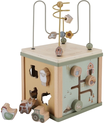 Dieser Aktivitätswürfel bietet viele Herausforderungen für Ihr Kind. Jede Seite ist mit den Freunden vom Bauernhof illustriert und bietet eine lehrreiche Aktivität wie ein Formensortierer, drehende Zahnräder, Puzzles und oben drauf eine lustige Perlen-Spirale. Mit jeder Aktivität entwickeln Kinder ihre Feinmotorik und werden ermutigt, ihre Kreativität zu nutzen. Dieses Spielzeug weckt die Neugierde bei Kindern und sorgt für stundenlangen Spielspaß. • Altersempfehlung: ab 18 Monate