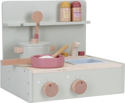 Sollen wir zusammen kochen? Mit dieser Miniküche aus Holz kannst Du jeden Ort, zu jeder Zeit in eine Küche verwandeln. Es gibt einen Topf und eine Bratpfanne, um die leckersten Menüs zuzubereiten. Ergänzt wird die wunderschöne Küche durch eine kleine Spüle, zwei Kochlöffel und nicht zu vergessen: Salz- und Pfefferstreuer. Diese süße kleine Küche ist zusammenklappbar, sodass sie mit allem Zubehör kompakt und einfach verstaut werden kann. • Altersempfehlung: ab 2 Jahren
