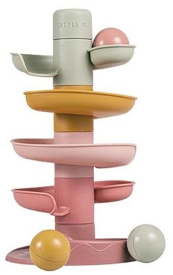 Lasst den Ball einfach rollen! Der Spiralturm von Little Dutch sorgt für endlos viel Spielfreude. Dieses farbenfrohe Set besteht aus fünf dezent gefärbten Teilen, die Ihr Kleinkind einfach aufeinanderstapeln kann. Lassen Sie gemeinsam die Kugeln eine nach der anderen auf die oberste Ebene fallen und beobachten Sie, wie sie nacheinander nach unten rollen und pendeln. Der Spiralturm hilft bei der Entwicklung der H&-Augen-Koordination und vermittelt den Kleinen etwas über Ursache und Wirkung, was sowohl Spaß als auch lehrreiches Spielen bedeutet. Der Spiralturm wird standardmäßig mit drei leichten und griffigen Kugeln in verschiedenen Farben geliefert. Die Kugeln machen beim Bewegen ein Geräusch. • Altersempfehlung: ab 10 Monaten