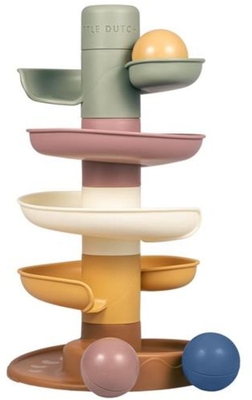 Lasst den Ball einfach rollen! Der Spiralturm von Little Dutch sorgt für endlos viel Spielfreude. Dieses farbenfrohe Set besteht aus fünf dezent gefärbten Teilen, die Ihr Kleinkind einfach aufeinanderstapeln kann. Lassen Sie gemeinsam die Kugeln eine nach der anderen auf die oberste Ebene fallen und beobachten Sie, wie sie nacheinander nach unten rollen und pendeln. Der Spiralturm hilft bei der Entwicklung der Hand-Augen-Koordination und vermittelt den Kleinen etwas über Ursache und Wirkung, was sowohl Spaß als auch lehrreiches Spielen bedeutet. Der Spiralturm wird standardmäßig mit drei leichten und griffigen Kugeln in verschiedenen Farben geliefert. Die Kugeln machen beim Bewegen ein Geräusch. • Altersempfehlung: ab 10 Monaten