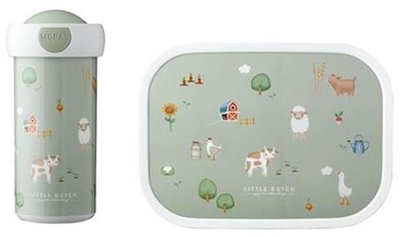 Mit dem Little Farm Lunch-Set von Mepal sind Sie bereit für einen neuen Schultag. Das praktische Set besteht aus einem Schulbecher mit Twist-off-Deckel und einer Lunchbox midi, ausgestattet mit Bento-Schale und Gabel. Der Trinkbecher ist garantiert auslaufsicher und auch von kleinen Kinderhänden leicht zu bedienen. Die Lunchbox bietet Platz für bis zu 4 belegte Brote und wird komplett mit Bentoschale und Obstgabel geliefert. So wird die Abwechslung beim Mittagessen wirklich kinderleicht! Überraschen Sie Ihren Sohn oder Ihre Tochter zum Beispiel mit ein paar Kirschtomaten zum Mittagessen oder geben Sie ihnen ein Stück Käse oder Wurst. Die Möglichkeiten sind nahezu unbegrenzt! Das macht jeden Tag ein bisschen mehr Spaß. Besonders schön für Mama und Papa: Sowohl der Schulbecher als auch die Brotdose können einfach in der Spülmaschine gereinigt werden.