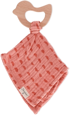 Kleines Schmusetuch aus bedrucktem Musselin (Bio) mit Buchen-Holzbeißring Vogel, aus der Serie Stay true to nature Enna und Otti. Geborgenheit und Sicherheit sind sehr wichtige Wahrnehmungen für dein Baby. Hier wird das Schmusetuch aus weichem, bedrucktem Musselin (Bio) schnell zu einem unverzichtbaren Begleiter zum Kuscheln, Festhalten, Trösten und zu einer beruhigenden Einschlafhilfe von Geburt an. Unsere Serie Stay true to nature steht für die Reduktion auf das Wesentliche und nachhaltige