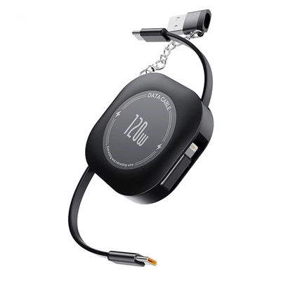 120W 4-in-1 Retractable& Storage Cable USB (Universal Serial Bus)-A/ Type-C to Type-C/i P Cable PD QC FCP AFC SCP Fast Charging Data Transmission