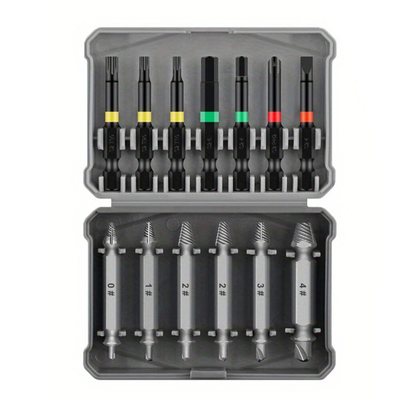 13PCS Multi-Functional Screw Extractor Set Double-Headed Wear-Resistant Chromium Vanadium Steel Rust-Proof for Stripped/ Rusted Screw Removal Woodworking Specialty Tools No Electricity Required