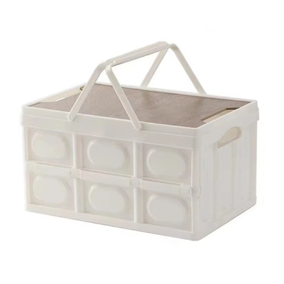 15L Folding Wooden Cover Storage Box PP Material White Space-Saving Design Home Office Organization Reliable & Stylish