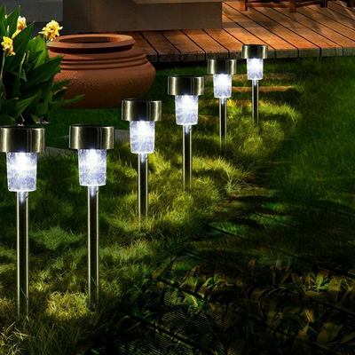 16pcs LED Solar Stainless Steel Lawn Lamps Garden Outdoor Landscape