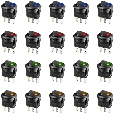 20PCS 3 Pin 20A 12V Round Rocker Toggle Switch with LED Light Blue Yellow Red Green Light On-Off Control Switch