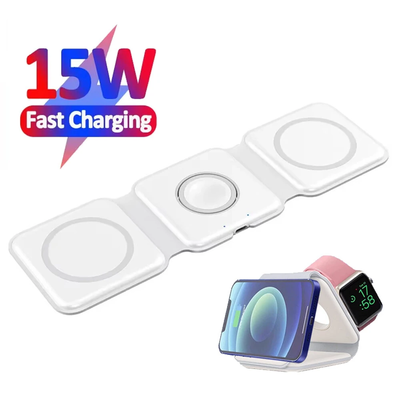 3-in-1 Magnetic Wireless Charger Foldable Design 15W Fast Charging