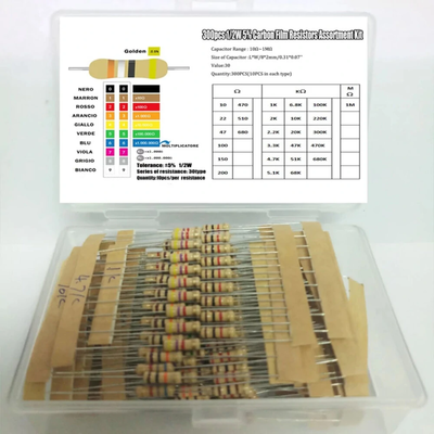 300PCS 30Values 10Ω-1MΩ 1/2W 5% Carbon Film Metal Resistors Assortment Kit