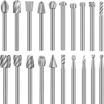 3mm High Speed Steel Woodworking Rotary Files Set of 20 - Carving DIY Polishing Grinding Head Milling Cutter Kit Accessories