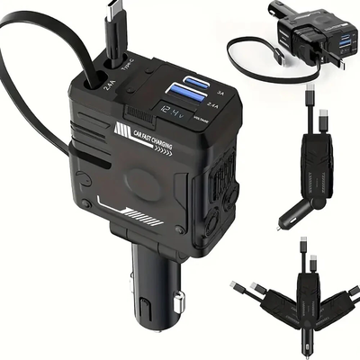 4 In 1 Retractable Car Charger Support 120W USB C Car Charger Adapter