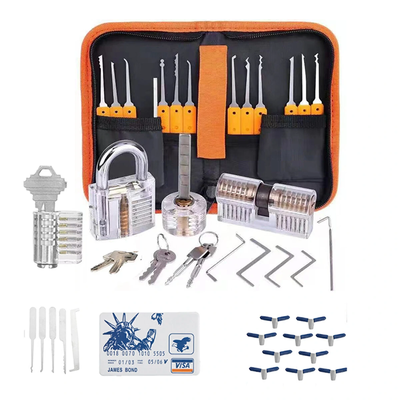 44PCS Orange Picks & Padlocks Set with Spring Steel Tools Transparent Padlocks & Automatic Unlocking Gun for Mechanism Learning & Lock Picking Practice