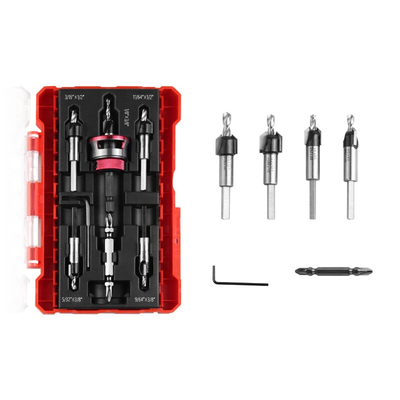 5pcs Countersink Drill Bit Set with Depth Stop High-quality 6542 Steel & Aluminum Alloy Multi-size for Woodworking Precision Drilling & Ease of Use