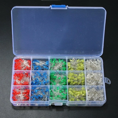 750 Pcs 3mm LED Diode Yellow Red Blue Green White Assortment Light DIY Kit
