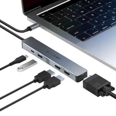 BlitzWolf® BW-NEW TH11 5 In 1 USB Hubs With Dual HDMI 4K@30Hz / VGA/