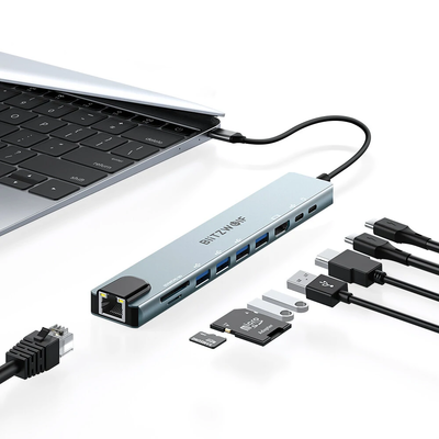 Only US$13.99, buy best blitzwolf® bw-new th 5 10 in 1 USB (Universal Serial Bus) hubs with hd 4k@30hz usb 3.0 / usb 2.0 / type-c 2.0 / rj 45 ethernet / 100w pd charging / sd tf card slots docking station for apple huawei laptops macbook sale online store at wholesale price.