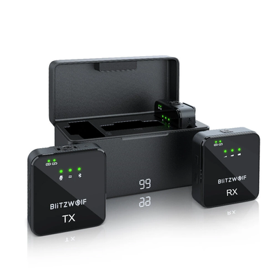 Blitz Wolf® BW-SX63 3 in 1 Wireless Lavalier Microphone with 1000m Ah Charging Case i OS Type-C 3.5mm Jack DSP Intelligent Nosie Reduction 2.4G Wireless Low Latency HD Mic Portable Microphone