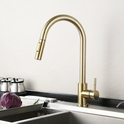 Brushed Gold Kitchen Sink Faucet Pull Out Water Tap Single Handle Mixer Tap 360 Rotate