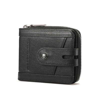 BULLCAPTAIN Genuine Leather Bifold Men Zipper Wallet RFID Blocking Mutil Card Holder Coin Purse Small Cash Clip