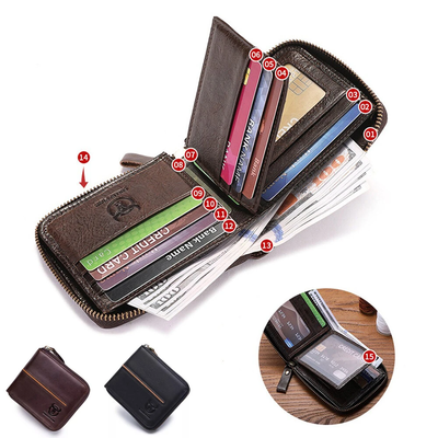 BULLCAPTAIN Men's Genuine Leather Wallet 11 Card Slots Credit Card Holder Mens Casual Business Coin Purse Bag Multifunctional RFID Anti-theft Card Bag ...