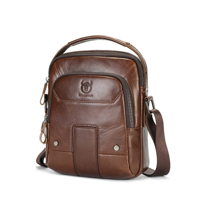BULLCAPTIAN Men's Soft Genuine Leather Messenger Bag Business Casual Multi-functional Zipper Handheld Crossbody Bag