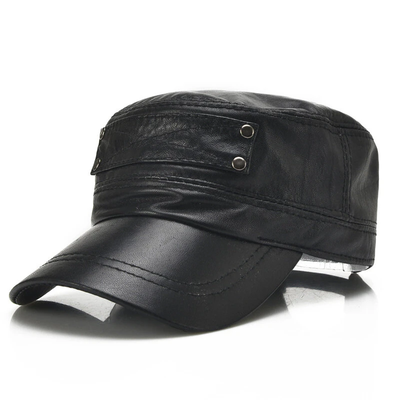 Collrown Genuine Sheepskin Leather Cap Men's Flat Cap Adjustable Outdoor Casual Black Caps for Spring Fall