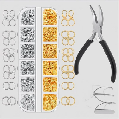 Craft Supplies Kit for Jewelry Making Jump Rings & Clasps Assorted Sizes Gold Silver Reliable Tools with Storage Case