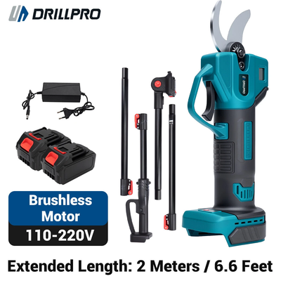 Drillpro Cordless Electric Pruning Shears Brushless Motor 30mm Cutting Diameter Aluminum Extension Pole 2m Makita 18V Battery Powered Gardening Tool