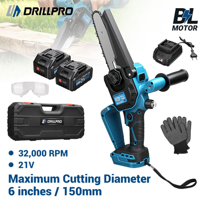 Drillpro Electric Chainsaw 6 Inch Cordless Brushless 21V 3.0Ah Battery