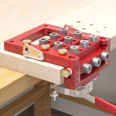 ENJOYWOOD 3in 1 Hinge Punch Woodworking Kit with Positioning Clamp Drill Hole Cover Versatile Punch Positioner Body Multiple Drill Bits Convenient Portable Efficient Accuracy in Drilling