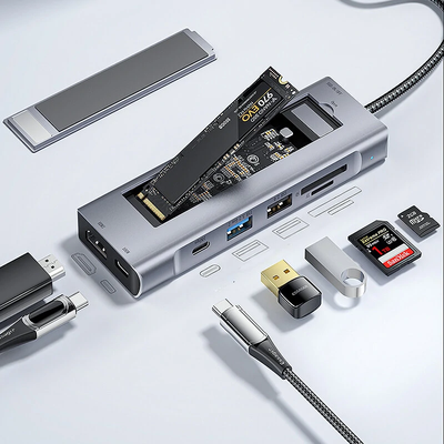 Only US$39.99, buy best essager 8-in-1 docking station with disk storage USB (Universal Serial Bus) 2.0 USB (Universal Serial Bus) 3.2 gen 2 10gbps USB (Universal Serial Bus)-c data pd 100w USB (Universal Serial Bus)-c 4k@30hz hd sd/tf card reader slot multiports m.2 ssd USB (Universal Serial Bus) hubs splitter for phone tv tablet laptop sale online store at wholesale price.