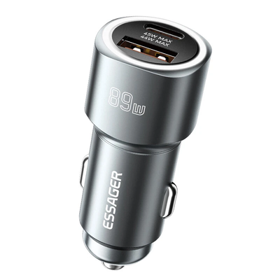 ESSAGER ES-CC16 89W 2-Port USB (Universal Serial Bus) PD Car Charger Adapter USB (Universal Serial Bus)-A+USB (Universal Serial Bus)-C PD QC3.0 Support FCP SCP VOOC Fast Charging for iPhone 15 14 13 Pro for Huawei Nova Flip for Samsung Galaxy Z Flip 6
