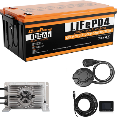 Only US$1479.62, buy best [eu direct] cloudenergy 48v 105ah lifepo 4 battery for golf carts & solar storage, 5370wh energy, 6000+ cycles, built-in 250a bms, lcd display bluetooth, in series/parallel, perfect for replacing most backup power rv boats solar trolling motor, off-grid sale online store at wholesale price.