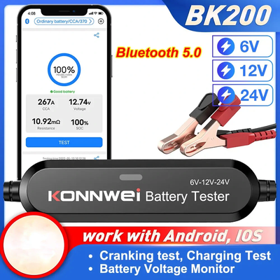 Only US$16.99, buy best konnwei bk100 bk200 bluetooth 5.0 car motorcycle truck battery tester 6v/12v/24v battery analyzer 100-2000 cca charging cranking test tools sale online store at wholesale price.