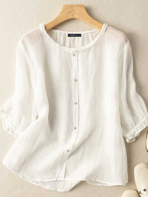 button - A small fastener used on clothing to secure two pieces of fabric together.
