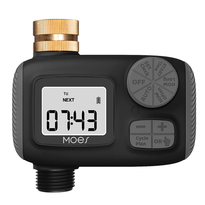 MOES 1-Outlet Water Timer IP55 Waterproof Brass Inlet Rotary Knob Button Control With LCD Display Screen Rain Delay Child Lock