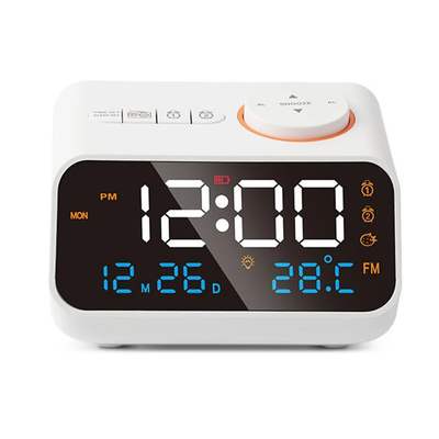 Multi-Functional LED Voice Control Clock Hygrometer FM Radio Dual Alarms Adjustable Brightness Temperature Humidity Display USB (Universal Serial Bus) Charging