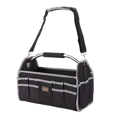 Multi Functional Tool Bag Heavy Duty 40x27x22cm 20kg Capacity Black Organizer with Stainless Steel Handle Adjustable Shoulder Strap and Multiple Tool Pockets