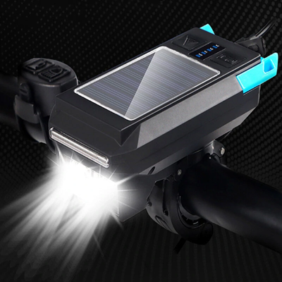 Only US$8.99, buy best solar charging bike headlight 400lm brightness 200m distance range 2000mah battery waterproof 3 light modes warning flashlight with 130db horn for road mountain bicycle sale online store at wholesale price. ...